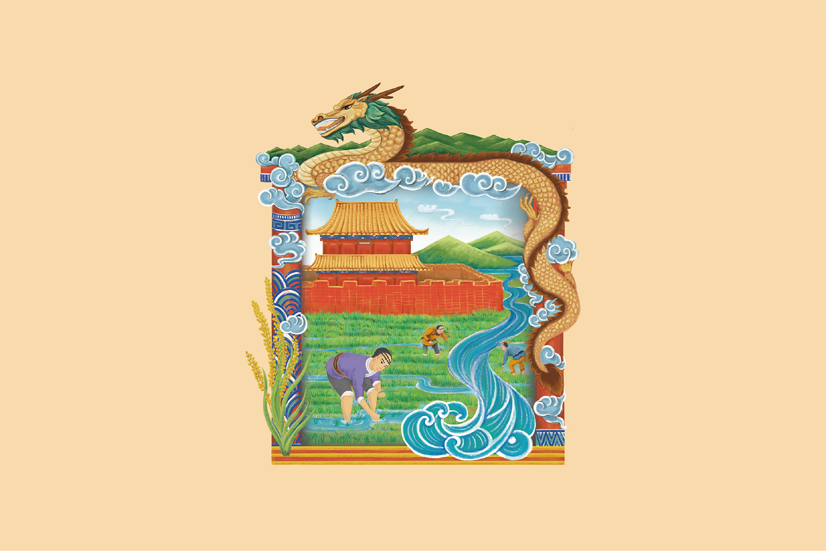 皇城與正在耕種的滿族旗人通過川流不息的淶流河水一脈相承,源遠流長的是不斷辛勤耕種的正統(tǒng)品質(zhì),鮮活的色彩與豐富的意象讓人不斷產(chǎn)生聯(lián)想,將品質(zhì)感與故事性通過易于理解的方式傳遞給消費者。
