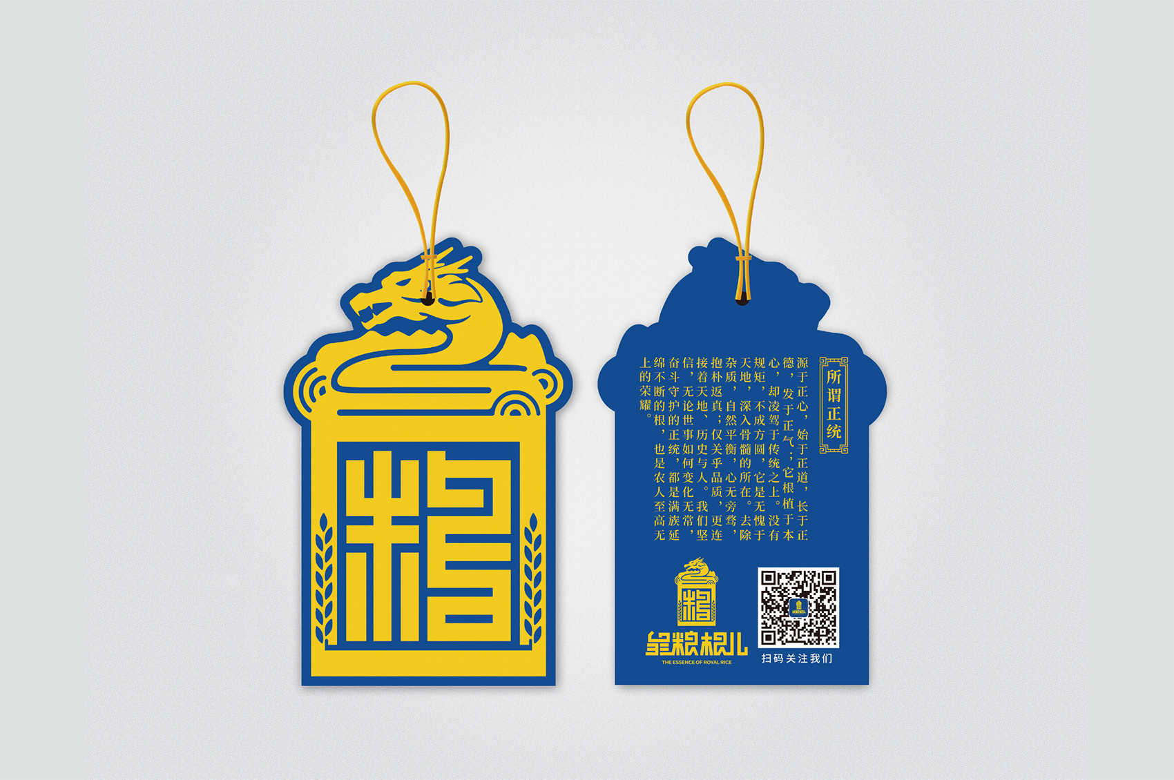 以兼顧理解與傳播度的slogan——傳承百年的正統(tǒng)成為了皇糧根兒不斷堅守與傳承的最好注解?;始Z根兒大米的logo采用了玉璽的形象來傳遞200年的皇室貢米內(nèi)涵,其中的環(huán)繞其中的白山黑水象征著滿族的龍興之地,原創(chuàng)設計字體采用了乾隆年間玉璽篆字字體風格,將皇糧根三字都融為一體,整體可以視作“糧”字,配合兩旁的水稻紋樣點明了行業(yè)屬性,端莊大氣,頗具皇家風范,在具有設計感的同時,能夠將皇糧根=正統(tǒng)貢米的品牌印象植入消費者心智。