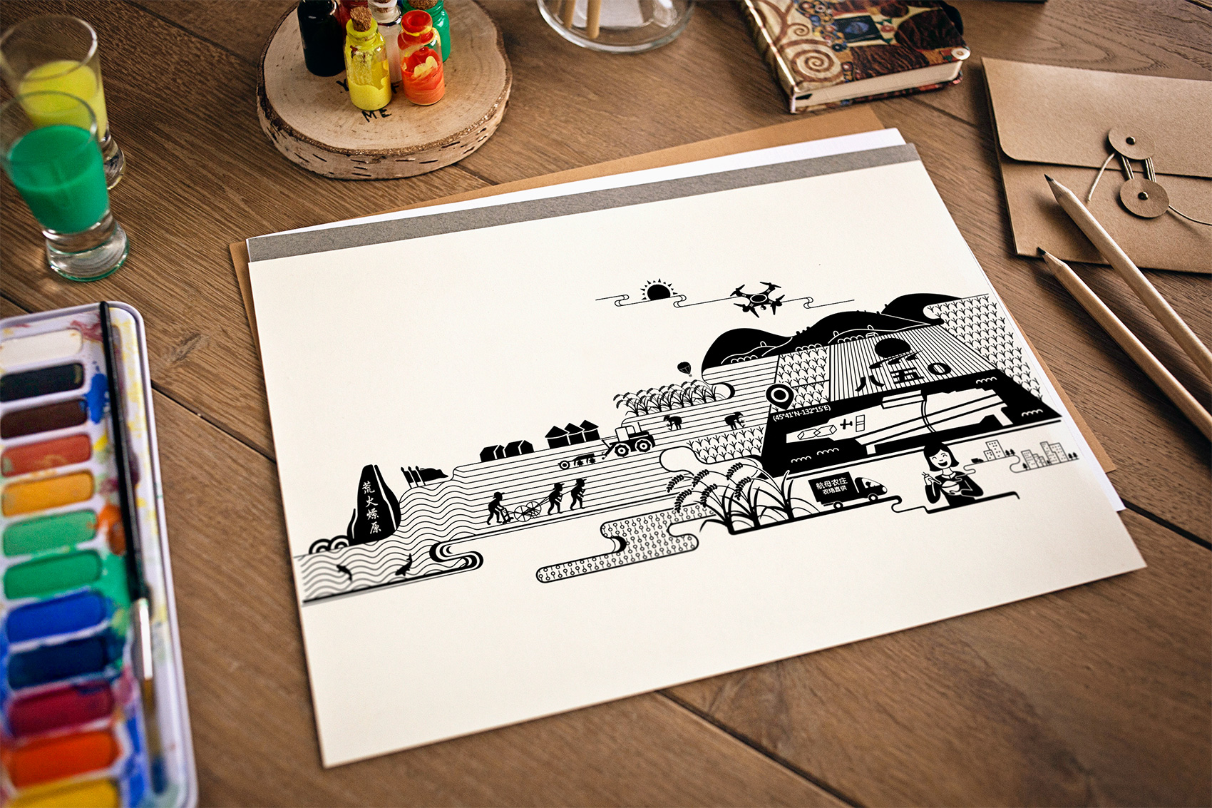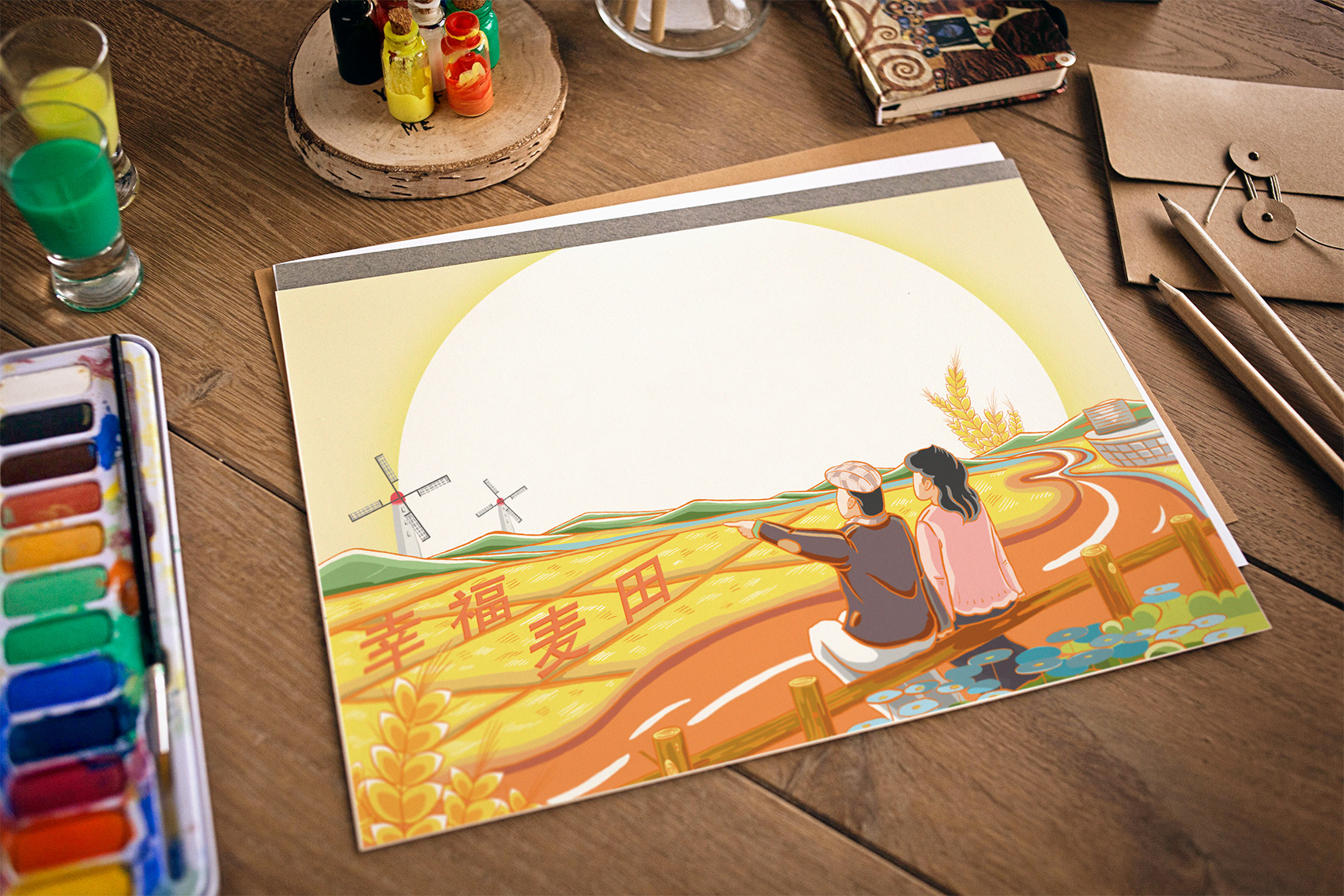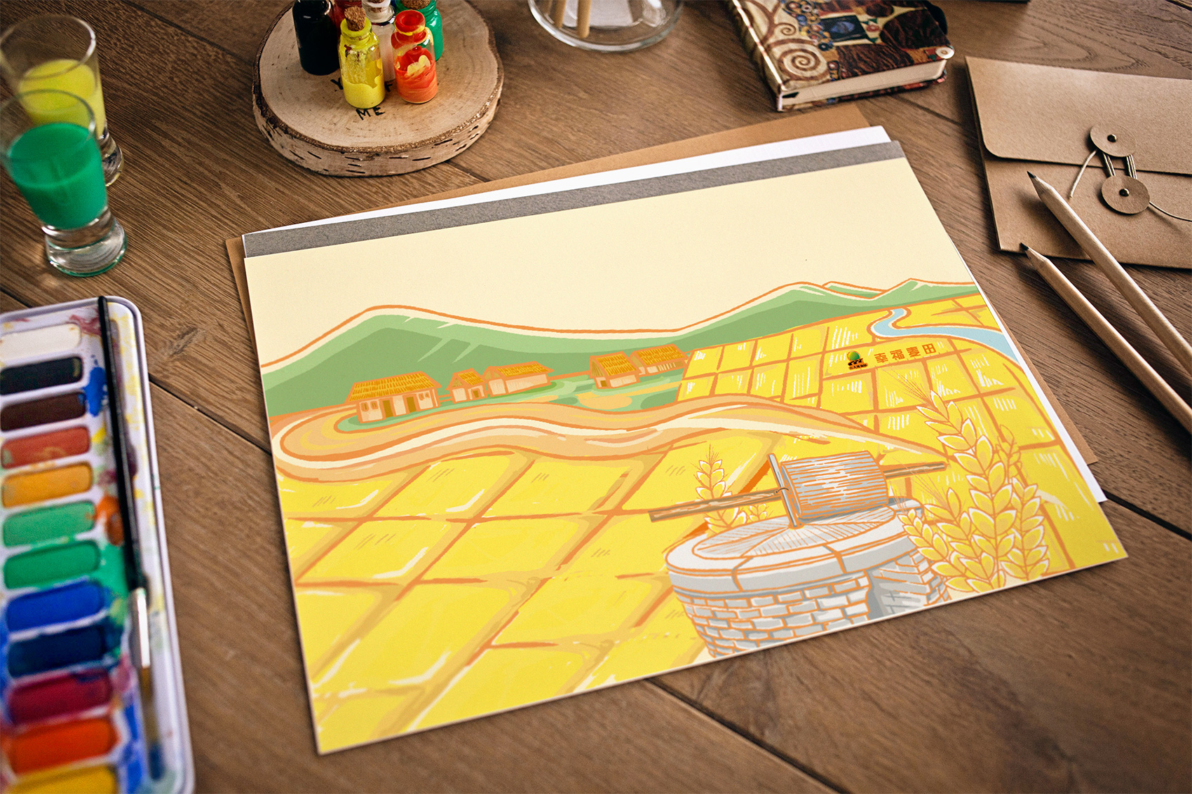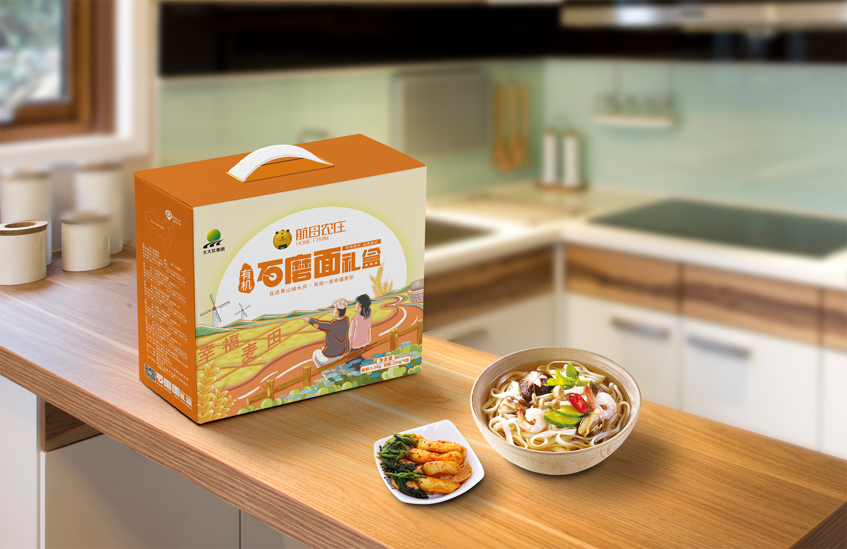 石磨面粉的產地位于有著“小江南”的建邊農場,產品使用傳統(tǒng)石磨加工,在低溫狀態(tài)下研磨面粉,使得面粉中的大部分營養(yǎng)成分得以保留,而這種慢工出細活的生產方式造就了產品的優(yōu)良品質,也與品牌提倡的綠色生活相呼應,繽策將這種慢生活的品牌內核通過手繪插畫進行表達,將攜手相依在夕陽下,遙望燦爛金黃的麥浪翻滾,在周圍青山綠水的環(huán)繞下的幸福場景,色彩飽滿穩(wěn)重,筆觸細膩,讓人浮想聯(lián)翩,仿佛麥香撲面而來。
