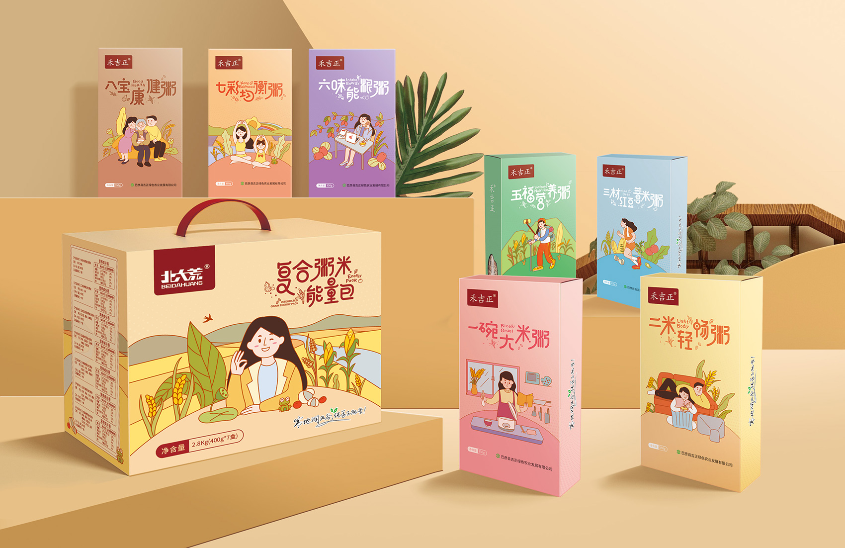 企業(yè)長期為各個雜糧品牌生產代工產品,雜糧行業(yè)經驗豐富,研制出多種配比合理的雜糧營養(yǎng)粥米系列產品,希望由此向直接面向消費者的C端轉型,希望繽策為其雜糧粥米產品設計出能夠直擊目標消費群體,凸顯品牌個性的產品包裝。