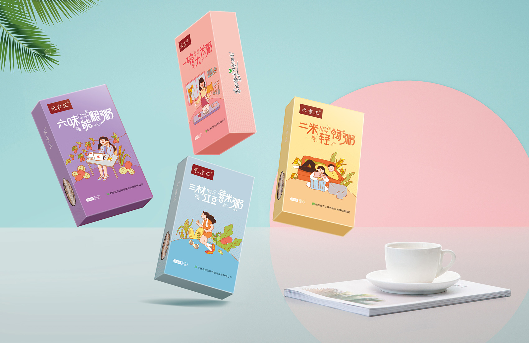 雜糧的主要消費群體為注重健康與身材管理的女性人群,但年齡分布較為廣泛,想要將這一群體統(tǒng)籌起來并非易事,由于年齡層面的差異,對于包裝的審美、購買時的關注的焦點都不盡相同,那么如何利用包裝將這一目標群體的注意吸引起來呢?繽策開始頭腦風暴其中的共同點,而答案就是——場景。 場景是目標消費群體唯一的共同點,場景需求是在環(huán)境、時間、事件、消費者所處角色多重因素決定的剛需——為了適應場景不得不產生的需求,例如在瘦身養(yǎng)生的場景中,受健康觀念的影響,食療是大多數消費者的第一選擇,而這其中雜糧的性價比最高,所以大部分消費者在此場景下會將第一時間想到雜糧,所以利用包裝提醒消費者所處場景是解決禾吉正的最有效的方式。 此外由于雜糧并非生活必須品,大多數消費者購買雜糧都是帶有強烈的目的性,當能夠直接了當的明白產品如何給予自身好處,消費者選擇品牌的傾向才會大大提升。繽策以場景化的時尚簡約插畫作為包裝主題,來演繹禾吉正雜糧的便利與效果。