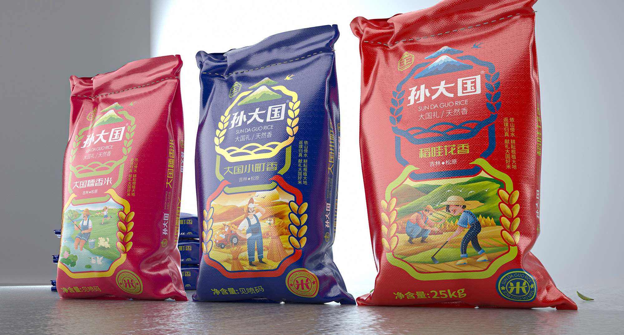 孫大國品牌沒有l(wèi)ogo僅僅注冊(cè)了字體商標(biāo),在視覺層面缺乏主體,而且面向糧油批發(fā)渠道,消費(fèi)者依然以價(jià)格與性價(jià)比作為主要購買決策,所以僅僅靠時(shí)下流行的滿版插畫是不行的,消費(fèi)者越來越精明的當(dāng)下,不會(huì)因?yàn)閱渭兊陌b好看就買賬,而是在品質(zhì)的基礎(chǔ)上能夠一眼記住,一眼打動(dòng),一眼說服才能促成購買。想要從大批的同類競(jìng)品中脫穎而出是個(gè)不小的難題。