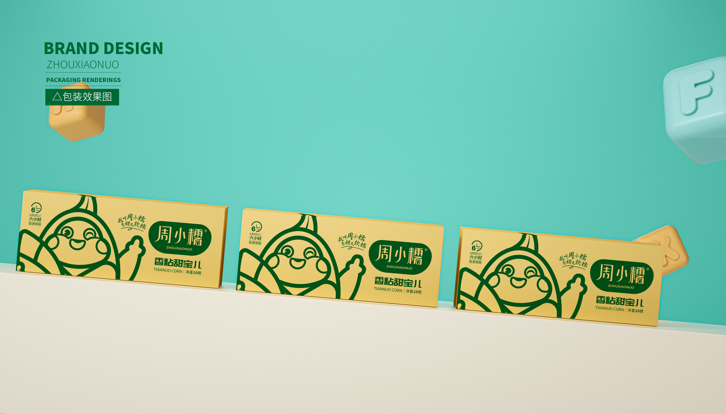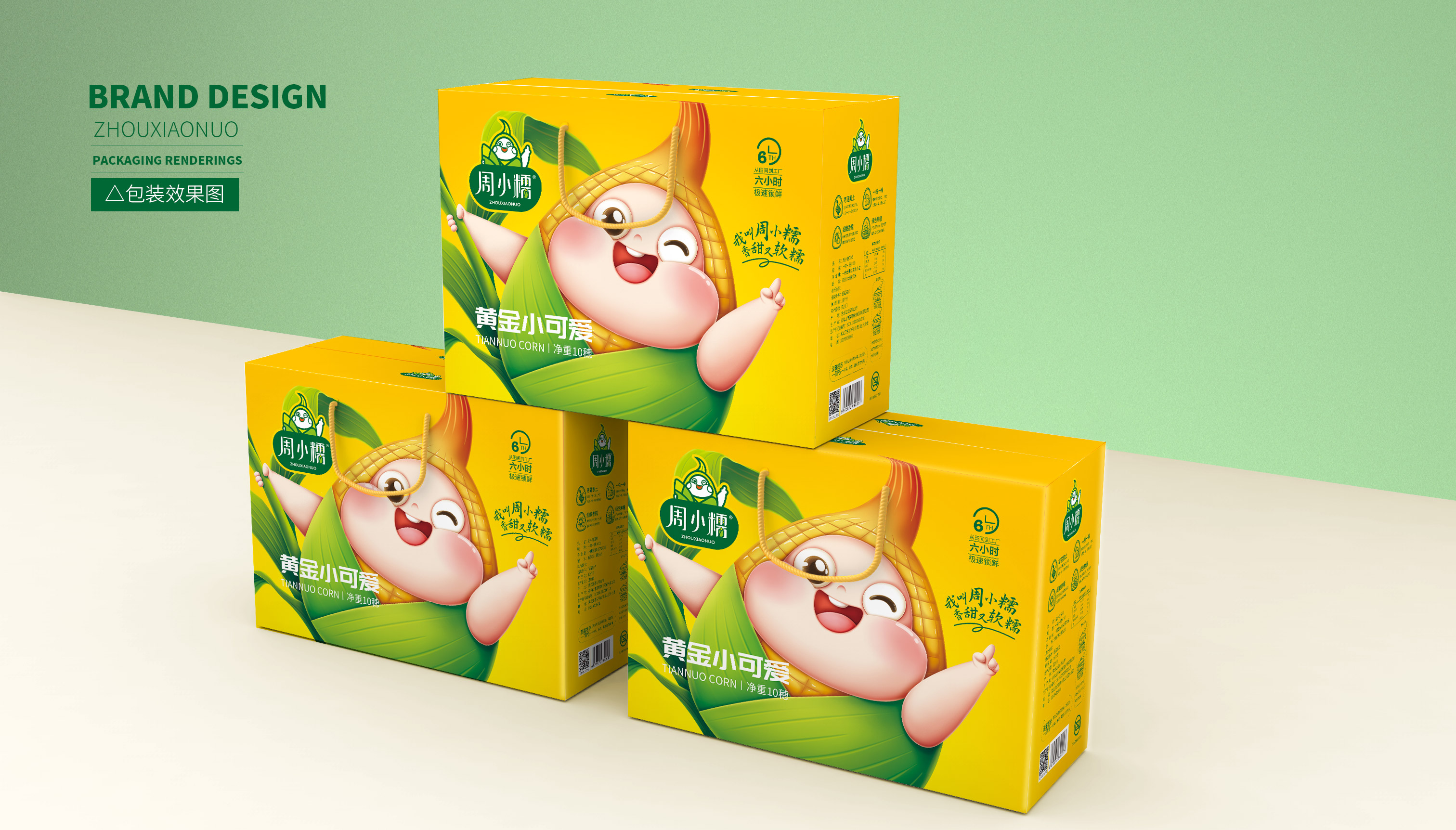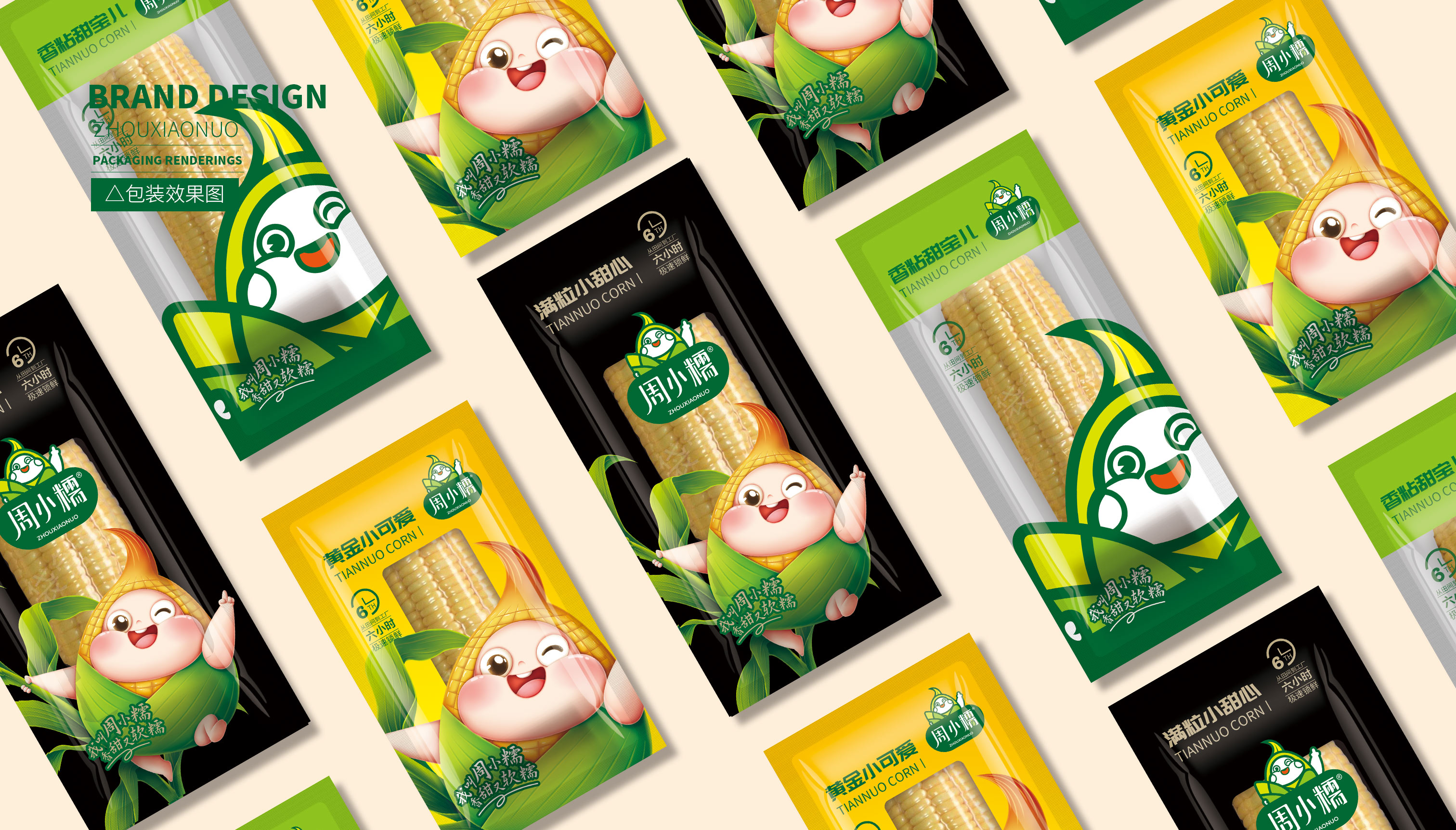 作為一個(gè)從零起步的新興品牌,周小糯僅僅注冊(cè)了品牌商標(biāo),在面對(duì)發(fā)展成熟、競(jìng)爭(zhēng)激烈的鮮食玉米市場(chǎng),品牌需要從頭構(gòu)筑,企業(yè)希望繽策能為其打造品牌基礎(chǔ)的logo、IP與包裝。