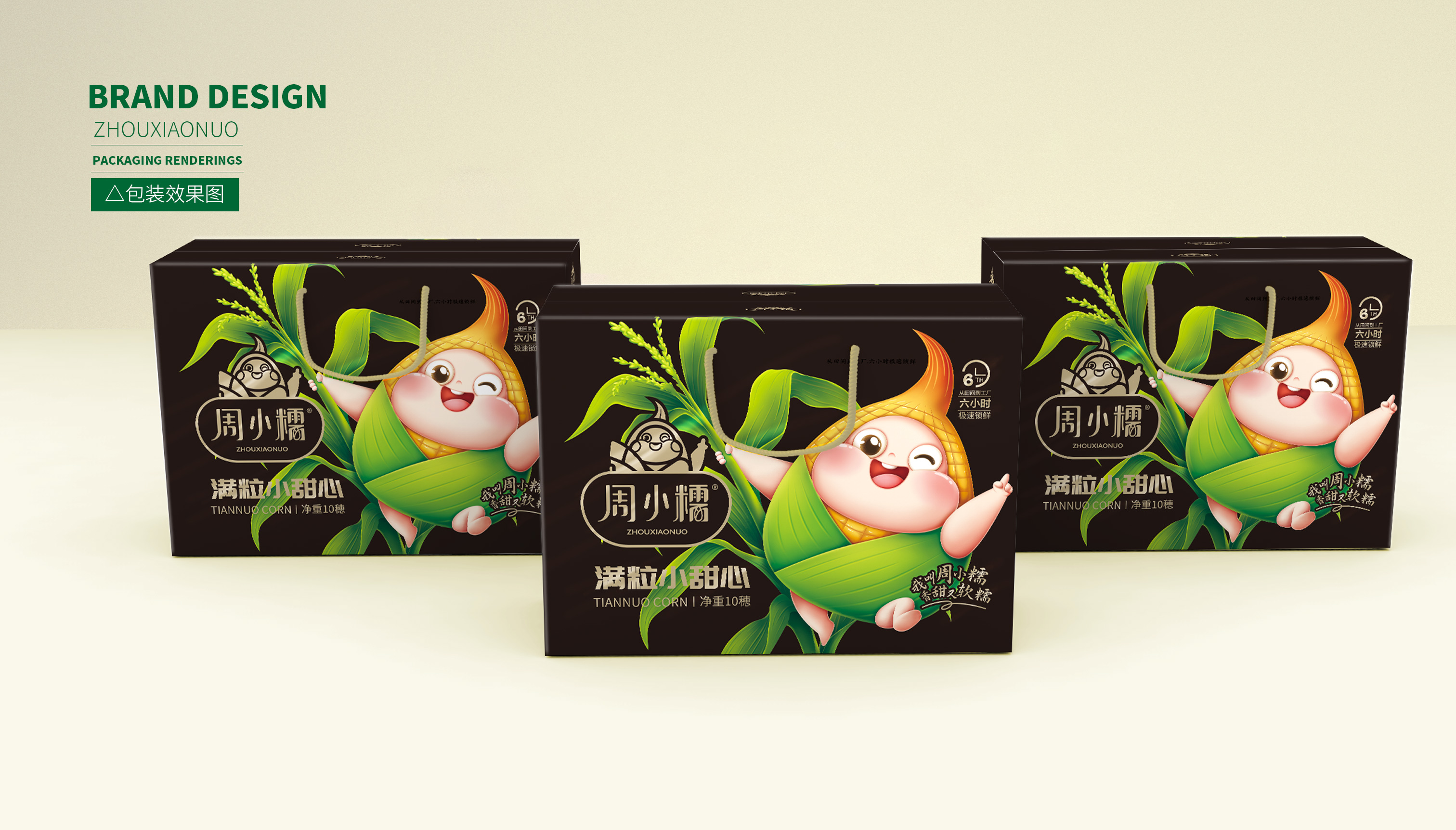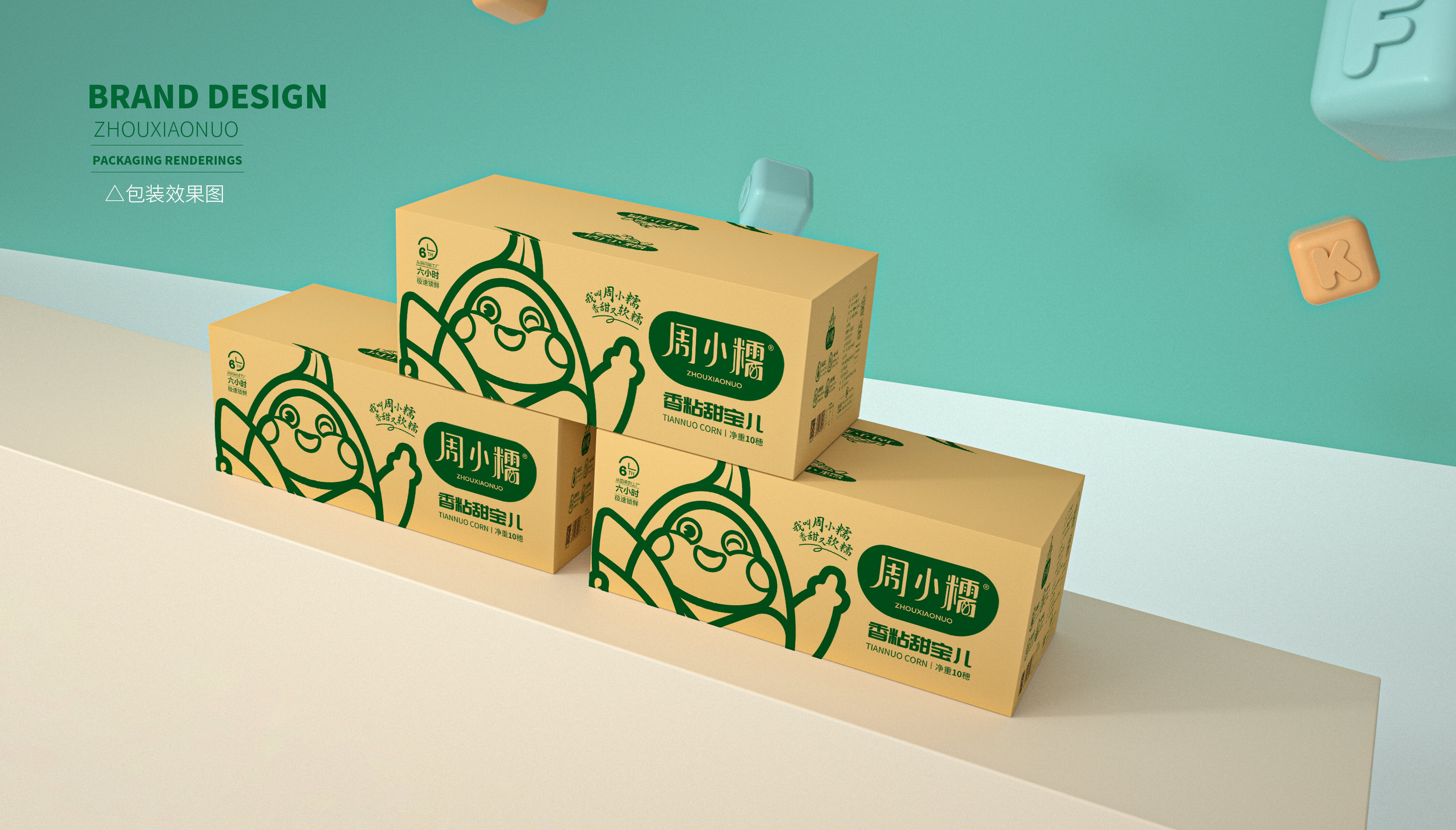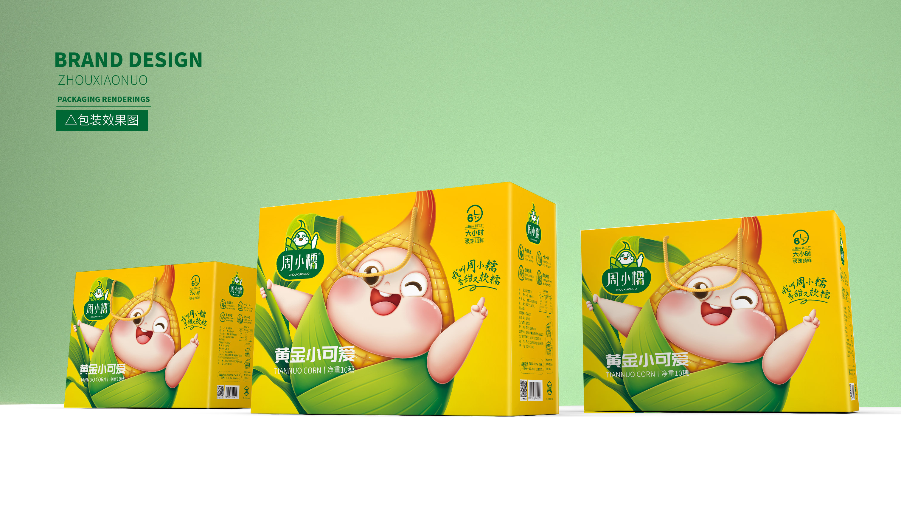 作為一個(gè)從零起步的新興品牌,周小糯僅僅注冊(cè)了品牌商標(biāo),在面對(duì)發(fā)展成熟、競(jìng)爭(zhēng)激烈的鮮食玉米市場(chǎng),品牌需要從頭構(gòu)筑,企業(yè)希望繽策能為其打造品牌基礎(chǔ)的logo、IP與包裝。