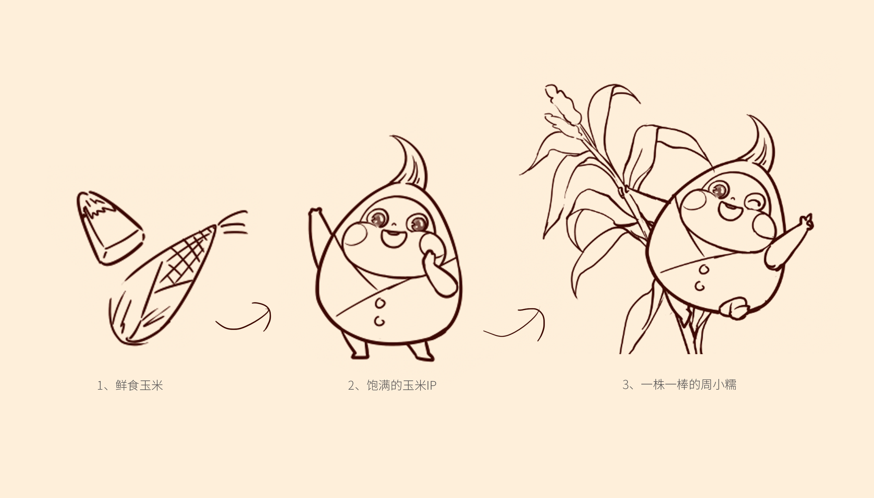 通過(guò)大量市場(chǎng)調(diào)研,繽策發(fā)現(xiàn)鮮食玉米的主要消費(fèi)者為女性,主流品牌包裝以種植場(chǎng)景插畫或擬人化IP為主,風(fēng)格為年輕消費(fèi)者喜愛(ài)的小清新。在設(shè)計(jì)層面,品牌logo及相關(guān)符號(hào)多數(shù)并不突出,畫面同質(zhì)化較為嚴(yán)重,消費(fèi)者很難分辨品牌之間的差別。經(jīng)過(guò)多輪頭腦風(fēng)暴的研討,繽策將從品牌名稱本身入手,打造差異化IP形象,并延展到logo與包裝上,使得品牌更加整體化,最大程度的提升傳播效率,讓消費(fèi)者切實(shí)記住品牌,在同類競(jìng)品中脫穎而出。