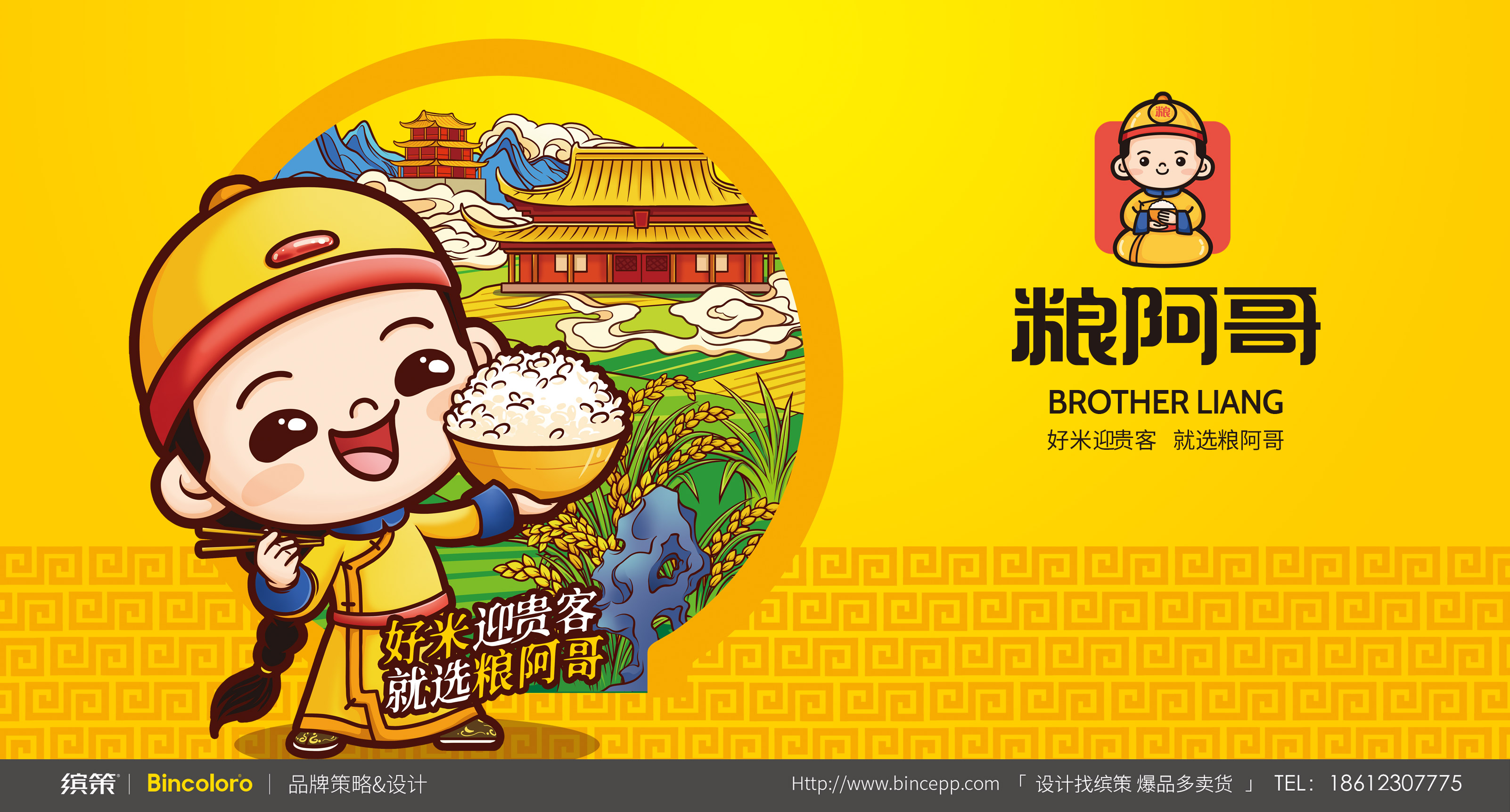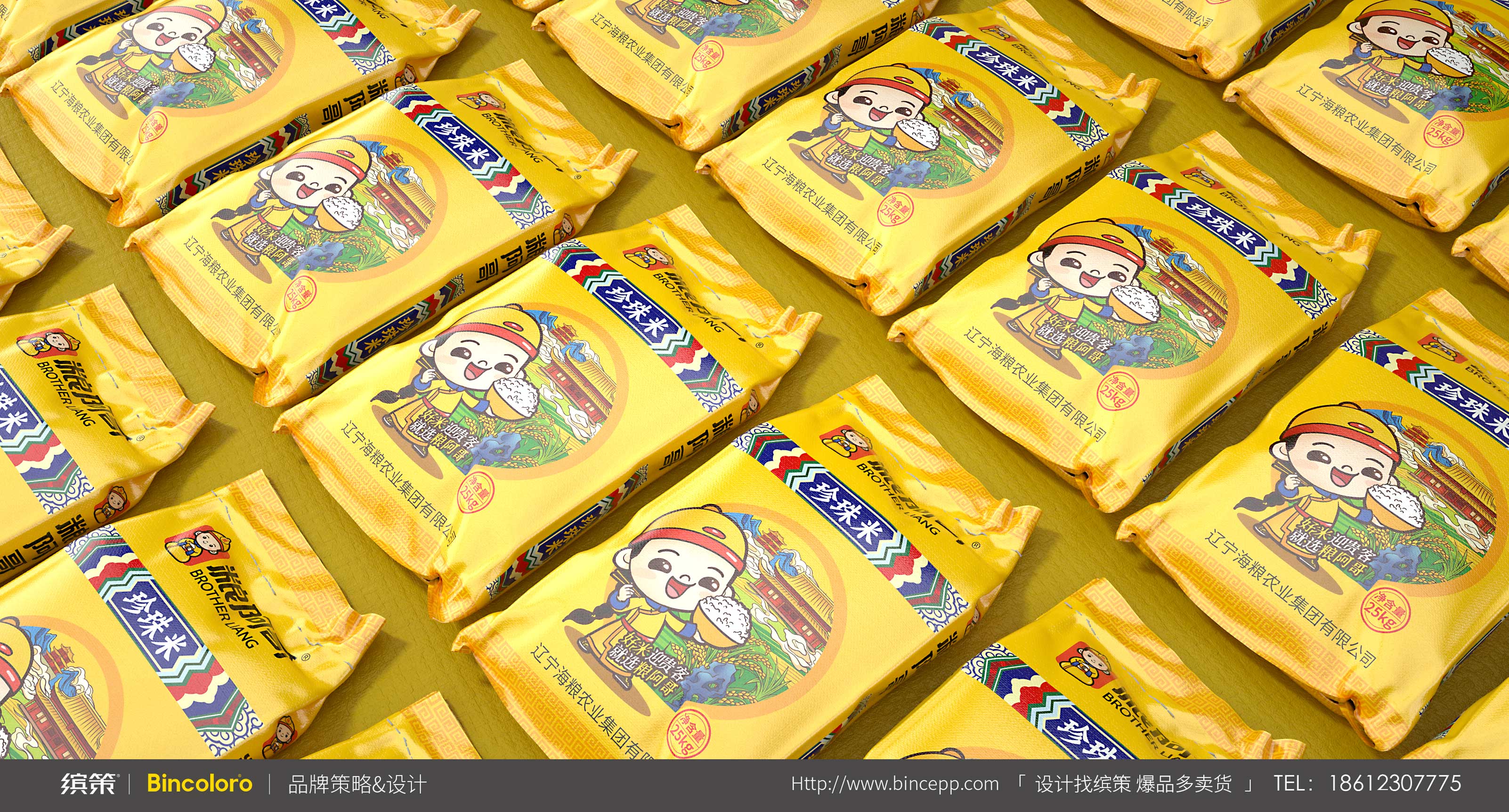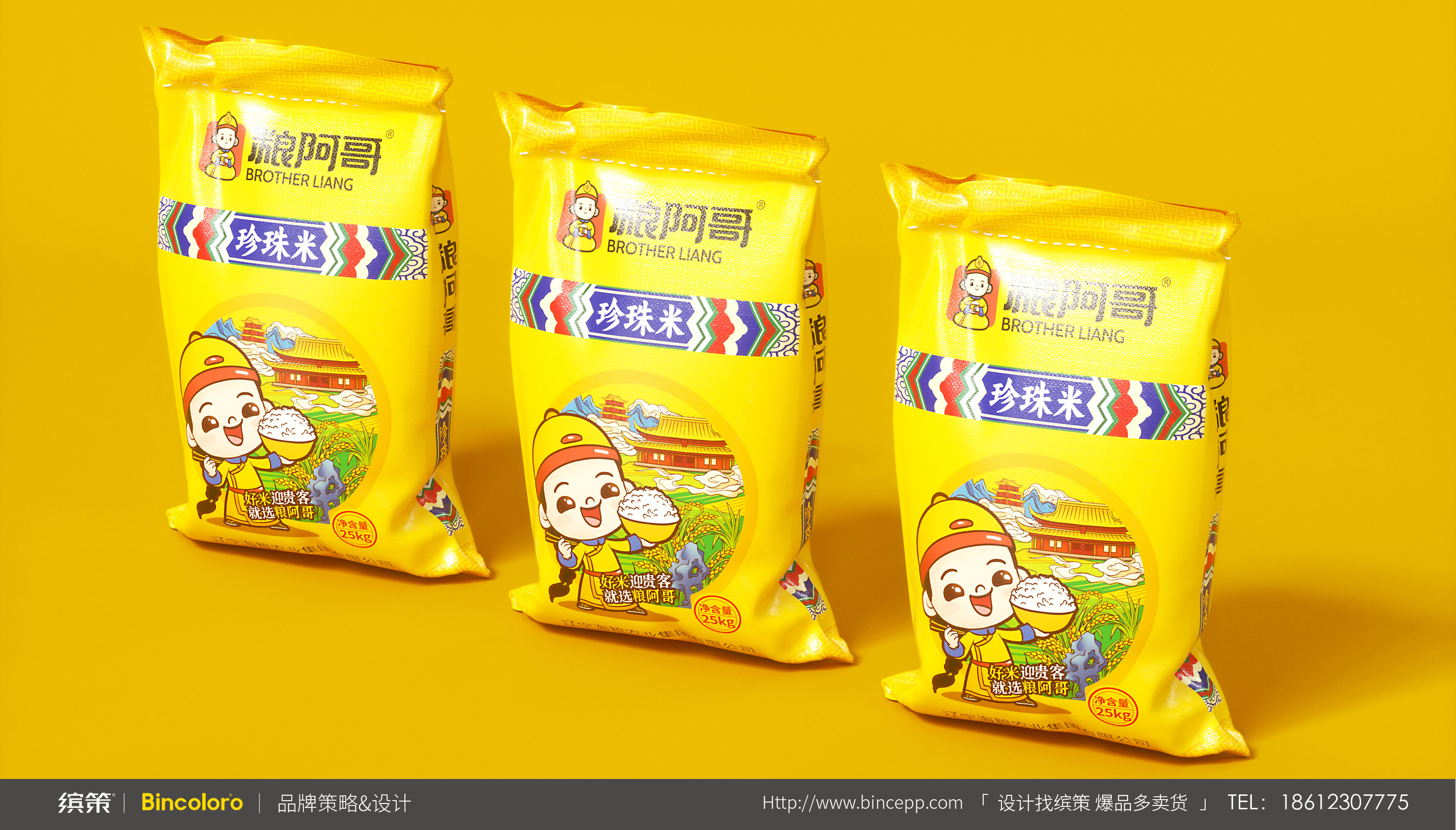 從認(rèn)知-記憶-認(rèn)同-復(fù)購的行為模式上來說,IP化的超級符號能夠吸引眼球,同時也為消費(fèi)者提供尋找品牌產(chǎn)品的依據(jù),也便于記憶與推廣。所以針對糧阿哥具象化的品牌名稱,繽策以傳統(tǒng)皇室阿哥形象為基礎(chǔ),將悠久歷史與品質(zhì)保證等核心價值融入其中,創(chuàng)造出專屬于品牌的可愛IP,系統(tǒng)化植入logo與包裝之中,幫助企業(yè)解決品牌基礎(chǔ)建設(shè)問題,目前產(chǎn)品已成功落地進(jìn)入市場。