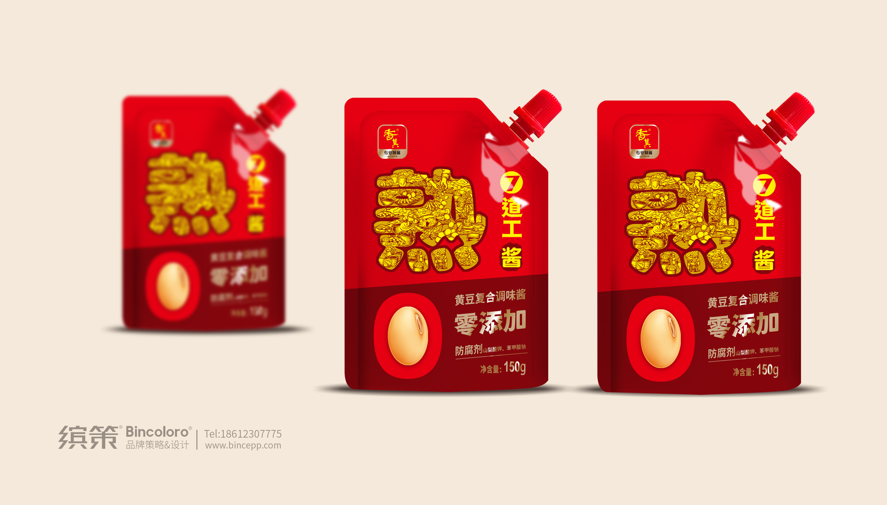 品牌的核心是直指消費(fèi)者心智,指引購買意愿,而最終呈現(xiàn)就是包裝,在最短時(shí)間內(nèi)向?qū)a(chǎn)品賣點(diǎn)呈現(xiàn)出來,并引導(dǎo)消費(fèi)者進(jìn)行記憶與購買。從認(rèn)知-記憶-認(rèn)同-復(fù)購的行為模式上來說,超級符號能最有效的吸引眼球,將核心概念植入消費(fèi)者心智,同時(shí)也提供了購買依據(jù),所以繽策將"熟"字提煉出來,結(jié)合傳統(tǒng)七道工藝與零添加的專屬特點(diǎn),共同打造獨(dú)屬于香其醬的熟醬符號。幫助品牌重塑消費(fèi)者心智。