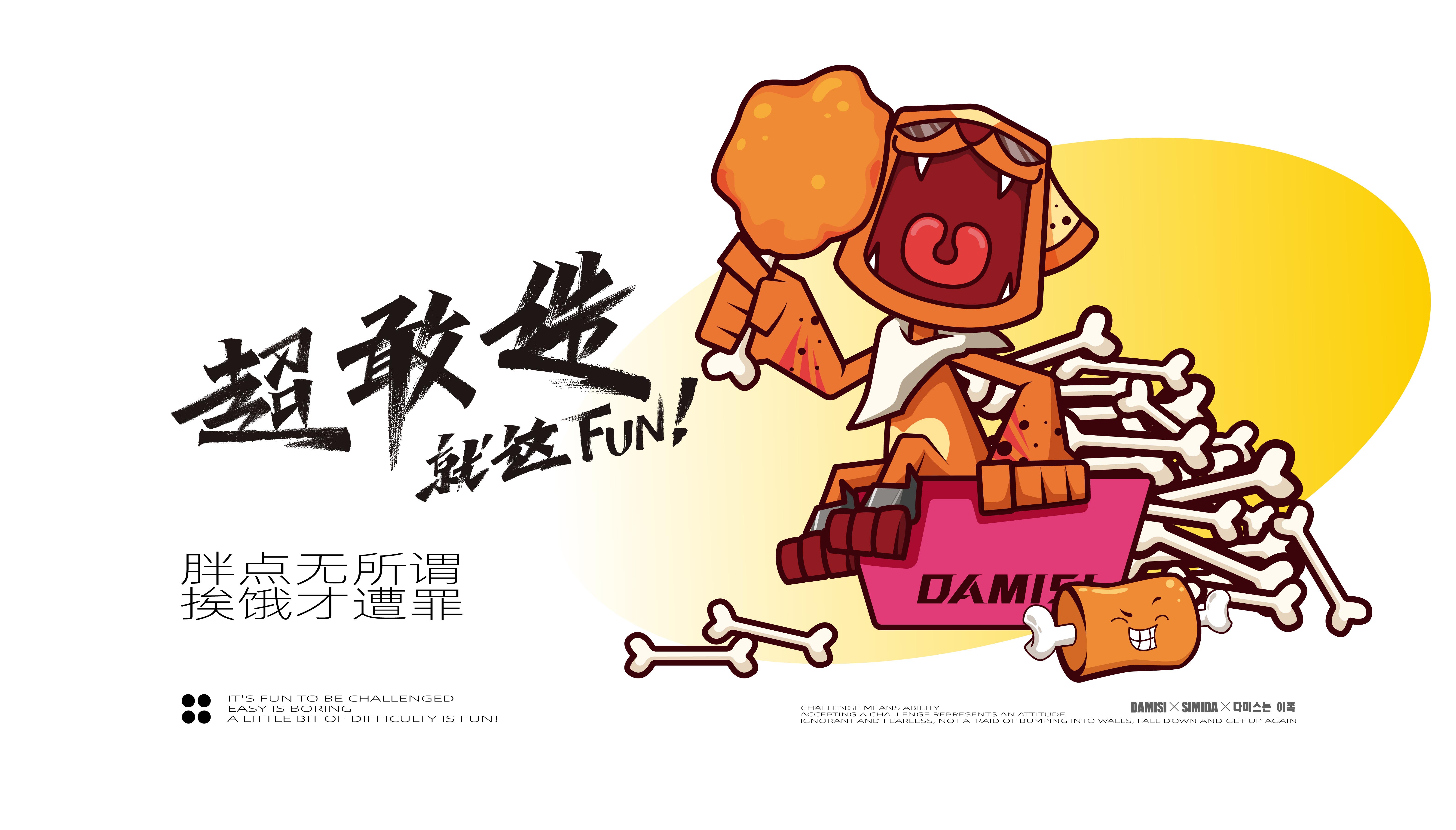 品牌的最總目的就是讓產(chǎn)品或服務(wù)自己在消費(fèi)者心中有力量、有溫度,將大眾轉(zhuǎn)化為品牌的忠實信徒,除了產(chǎn)品過硬以外,品牌內(nèi)核能否引發(fā)共鳴和認(rèn)同才是關(guān)鍵,面向年輕群體尤為如此。所以達(dá)米斯的品牌精神核心就要激發(fā)年輕人的認(rèn)同感,當(dāng)下95-00后年輕群體是互聯(lián)網(wǎng)的原住民,他們樂于嘗試、敢于表達(dá),尤其是對于自我標(biāo)簽和態(tài)度上尤為熱衷,取悅自我、展現(xiàn)個性是他們永恒的話題,通過產(chǎn)品出發(fā),繽策將品牌核心定位于FUN,關(guān)聯(lián)主產(chǎn)品的同時,也包含熱愛、態(tài)度與樂趣的多重含義,將充滿反叛意味的鮮明風(fēng)格融入其中,結(jié)合受年輕人喜愛的IP形象共同打造品牌時尚、潮酷的調(diào)性,青春洋溢、無拘無束的搖滾豹張牙舞爪演繹著達(dá)米斯無所無懼的姿態(tài),張開的大嘴極富趣味性。同時將IP元素系統(tǒng)地植入物料及空阿金,對比突出、層次鮮明。從視覺層面、營銷賣點及品牌調(diào)性上全面與競品形成差異化表現(xiàn),使其脫穎而出。