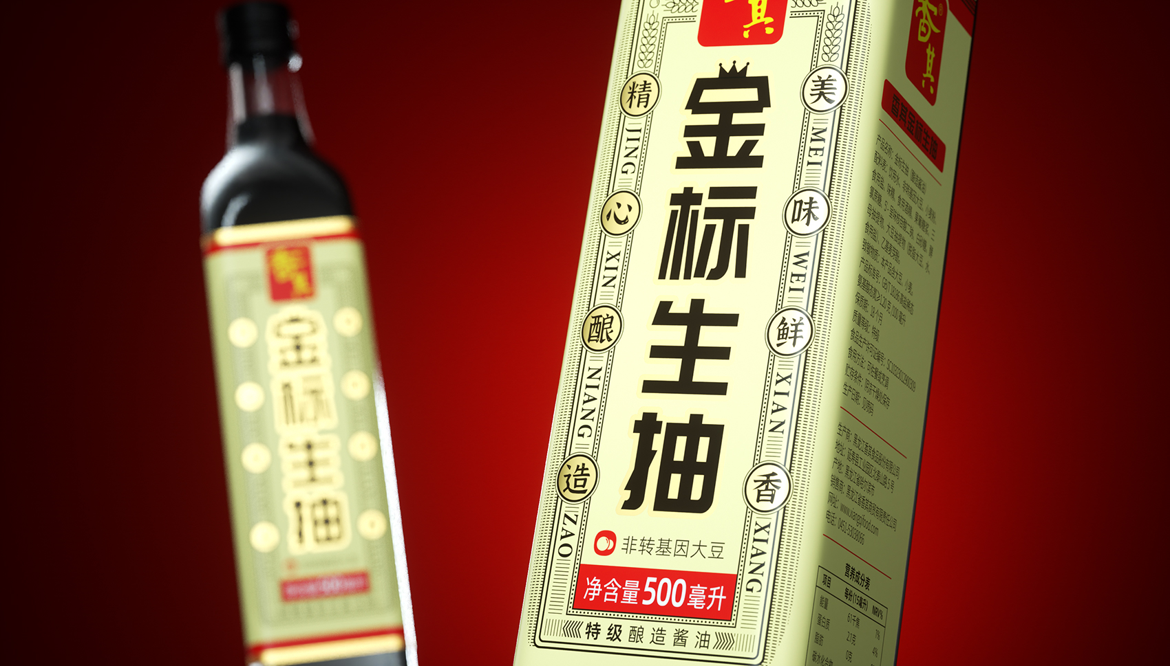 北方醬類市場(chǎng)中深耕多年的香其醬,其主打產(chǎn)品——熟醬經(jīng)過(guò)多年的宣傳與推廣,在35歲以上的消費(fèi)者的心智中,已經(jīng)對(duì)紅色加黃色logo的搭配形成固定認(rèn)知,在知名度與認(rèn)可度上具有相當(dāng)大的優(yōu)勢(shì),但在95-00后年輕消費(fèi)群體中卻鮮為人知,同時(shí)傳統(tǒng)包裝在視覺(jué)元素上無(wú)法迎合這類群體的審美,同時(shí)為了進(jìn)一步拓展市場(chǎng),企業(yè)將進(jìn)軍高端醬油品類,以金標(biāo)生抽與一品鮮特級(jí)釀造醬油兩個(gè)產(chǎn)品作為先遣隊(duì),希望繽策為這兩款產(chǎn)品設(shè)計(jì)符合營(yíng)銷需求與消費(fèi)者審美的包裝。
