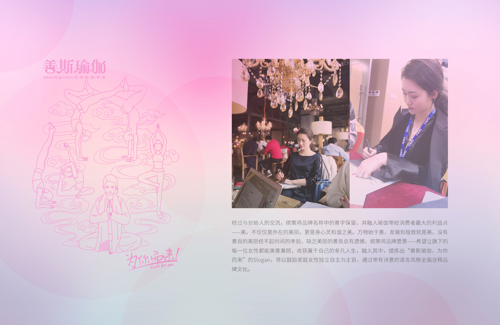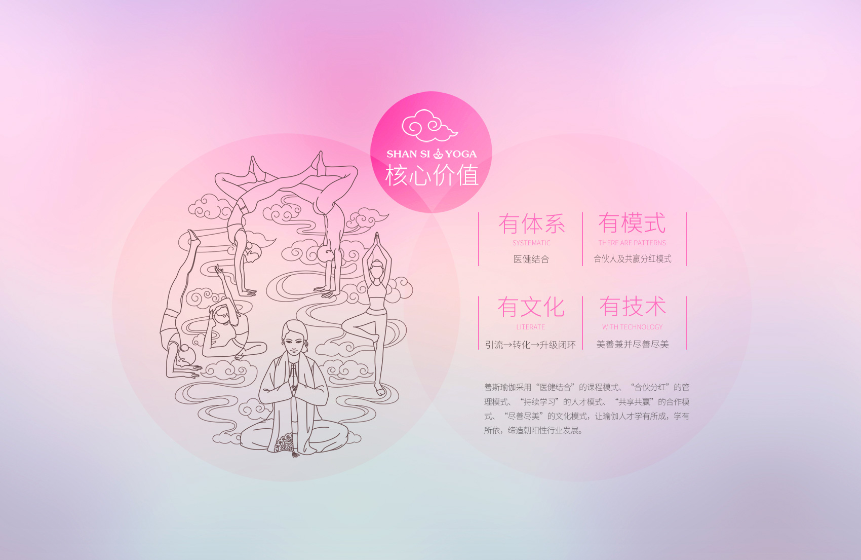善斯瑜伽是專(zhuān)業(yè)私人定制式瑜伽品牌,致力于高端瑜伽課程訂制及專(zhuān)業(yè)瑜伽人才培養(yǎng)輸出,成立于2013年,歷經(jīng)5年時(shí)間團(tuán)隊(duì)不斷發(fā)展壯大,現(xiàn)有9家加盟店,2家直營(yíng)店,培養(yǎng)瑜伽人才達(dá)1000人以上,累計(jì)私教服務(wù)達(dá)10000節(jié)以上,進(jìn)入連鎖發(fā)展階段的善斯,由于沒(méi)有成體系化的品牌文化及統(tǒng)一化的品牌形象,導(dǎo)致加盟店的展示形象不統(tǒng)一,無(wú)法將品牌整體化輸出,形成品牌壁壘,建立消費(fèi)者影響力,阻礙企業(yè)進(jìn)一步擴(kuò)大規(guī)模。企業(yè)希望通過(guò)品牌文化梳理,及品牌形象統(tǒng)一將善斯瑜伽這一品牌系統(tǒng)化進(jìn)行輸出,通過(guò)獨(dú)有的“醫(yī)健結(jié)合”的課程模式、“合伙分紅”的管理模式將瑜伽私教整合資源,將善斯瑜伽的品牌推廣至全國(guó)。